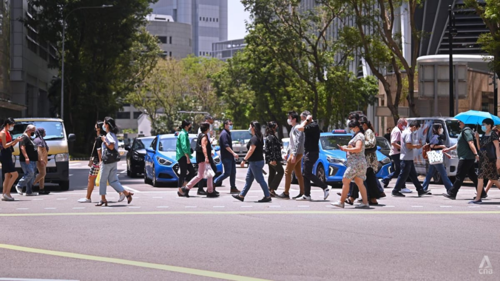 Singapore Singapore People wearing protective face masks in the Central Business District in Singapore on Mar 25, 2022. (Photo: CNA/Gaya Chandramohan)SINGAPORE: The COVID-19 infection wave driven by