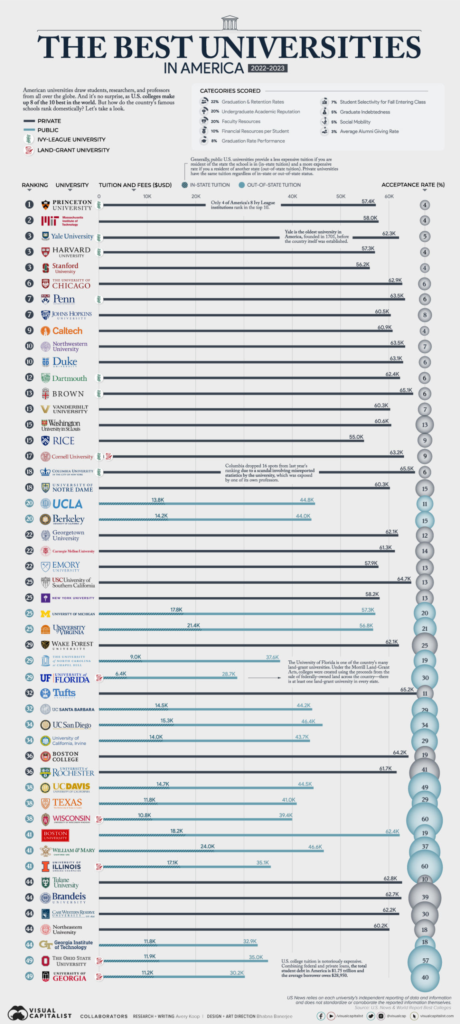 The ranking of top US universities looks at nine different categories to rate the institutions, including faculty resources and social mobility. Image: Unsplash/Dom Fou Author, Visual Capitalist Share:Stay