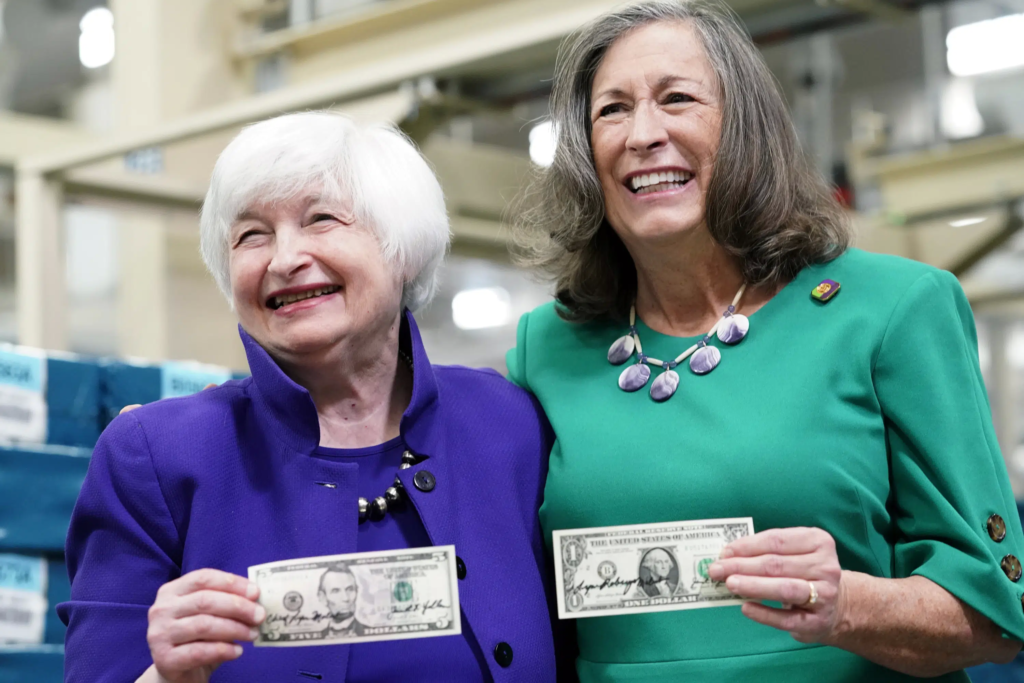 FORT WORTH, Texas (AP) — Treasury Secretary Janet Yellen on Thursday helped mark a milestone in U.S. history when she held up a newly minted $5 bill