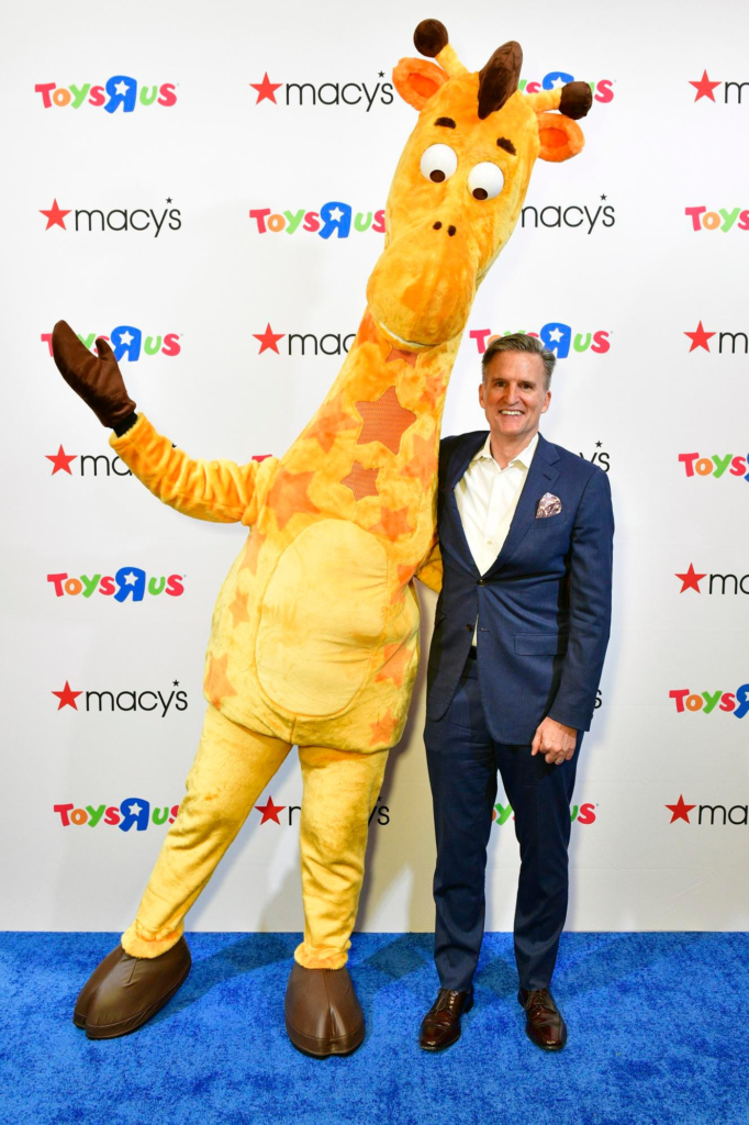 Jeff Gennette, Chairman & CEO of Macy’s, Inc. poses with Toys R Us mascot Geoffrey at the unveiling … [+] of the Toys R Us flagship shop
